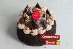 Krachtige chocoladecake met romige chocoladevulling , stukjes brownie en gecarameliseerde pecannoten. Let op: de grote variant heeft een iets krachtigere chocolade-ganache vulling (zie foto 2).