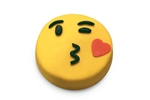 Marsepeintaart Emoji. Standaard geel met kusmondje, maar optioneel in andere emoji’s (zie 2e afbeelding voor de opties). Vanaf 6-8 personen.