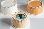 Marsepeintaart in pastelkleurige uitvoering. Op de foto van links naar rechts: wit (alleen icing), beige (marsepeinkleur) en lichtbruin. Let op: wil je de witte variant, deze is alleen met icing in plaats van marsepein te krijgen op speciaal verzoek. Neem hiervoor even contact met ons op. Foto en tekst optioneel toe te voegen en vulling naar wens te kiezen. Let op: tot 14 personen wordt de taart één-laags en vanaf 14 personen wordt de taart extra hoog (zoals op de foto).